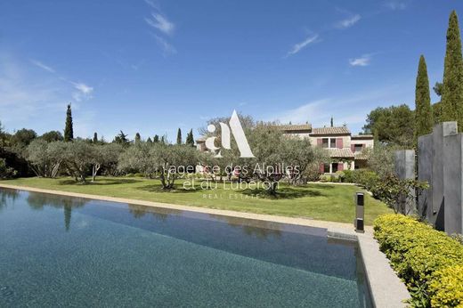 On the ground floor of this quintessentially Provençal family home, the generously proportioned kitchen gives onto a terrace ideal for al fresco meals. The living room, flooded with natural light, has beamed ceilings and a fireplace, and opens up to the garden. Two bedrooms are on this floor, including the master with its en suite and access to the terrace's view across the rose garden and pool. Upstairs there are five more en suite bedrooms. Two have connecting doors, ideal for families with younger children, while another has a private roof terrace.