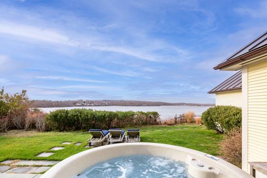 Located moments to Montauk Village and ocean beaches, enjoy expansive western facing water views across Fort Pond from this charming and light-filled waterfront Traditional. Enter through the gracious foyer that leads to an open living room with a gas fireplace and soaring ceilings, chef's kitchen, and dining area with an impressive wall of glass sliding doors and windows that frame the dramatic water views. The first floor also includes an ensuite bedroom, den, and laundry room. The second floor is comprised of the primary ensuite bedroom with water views and two spacious guest bedrooms. The sliding doors off the living room open to expansive decking and patio with chaise lounges, dining table, BBQ, and spa perfect for watching the sunset. There are two free standing guest cottages with bedrooms, living areas, en-suite bathrooms, and private patios. This is the perfect compound to enjoy all that Montauk has to offer; from sublime dinners at The Crow's Nest to miniature golf at Puff n Putt, Montauk summers are in a class all their own. [[Rental Registration # Pending]] EH RR #: 23-20