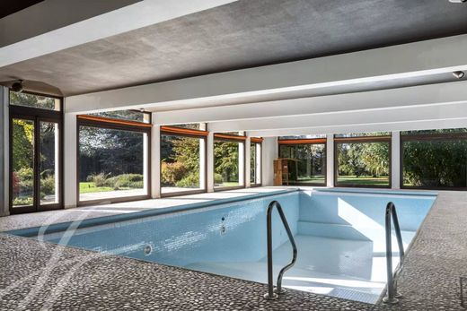 On the first floor there is an entrance hall with dressing room, a large living room with fireplace, a large dining room, a library with a second fireplace and a fully equipped kitchen with outside access. On this level, there is also a bedroom with bathroom, a laundry room, a studio with kitchenette and access to a relaxation area with a large indoor pool (12.5x5.5 meters), a changing room with shower, a sauna, a relaxation area with a fireplace and a barbecue room. This relaxation area offers a magnificent luminosity, thanks to large bay windows, with access to the garden.