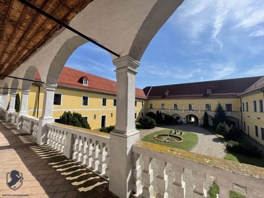Here you have the opportunity to contribute and implement your own ideas I would be happy to explain this to you in a personal conversation on Tel. 06648775410 Udo Bereswill Description History Walkenstein was owned by the Babenbergs in 1074, towards the end of the 13th century the Kuenringers are mentioned as the owners and between 1265 and 1324 a noble family, who probably had the rule as a fief from the Kuenringers, named themselves after Walkenstein. Johann Ehrenreich Baron of Sonnau and Reichersberg had the castle built in its current form between 1660 and 1671, which after several changes of ownership became the property of the Geras Abbey under Abbot Paul Gratschmayer, according to the purchase contract of November 8, 1760, which initially used it as an estate. Abbot Adrian Lambert Zach, who endeavored to put the Geras Abbey on a broader economic footing, set up a cold water spa here in 1890. Originally, 30 rooms were available for spa guests, and in 1904 the authorities approved an expansion of the spa to 40 rooms. Main part 17th century Secondary part 9th century Walkenstein Castle, Walkenstein 1, 3752 Walkenstein Page 3 Description The early Baroque castle from the 17th century is located on a 1.3 hectare property in a slightly elevated position in the south of Walkenstein (Lower Austria). The historic building facing Kainreith is in the immediate vicinity of the local parish church, which creates a wonderful overall ambience. Four single-storey wings form a large rectangular courtyard measuring 36.1 × 26.3 metres, on the east and west sides of which there are ridge-covered round-arch arcades above prismatic pillars. The west wing is dominated by a square tower with a tent roof, cross and finial. Below the tower is the main portal framed by pilasters. In the east wing there is a chapel in need of renovation. The three-part beams and the broken segmental gable above it bear an inscription plaque commemorating Johann Ehrenreich Freiherr von Sonnau und Reichersberg, as well as an asymmetrical cartouche with the double coat of arms of the Geras monastery and Abbot Paul Gratschmayr. A terrace in front of the south side of the castle has been preserved from the original baroque gardens, below which there is a large, walled garden and from which a baroque, two-flight staircase with remains of balustrades leads to the castle. The building is supplied with central heating and is connected to the local water and sewer system. The roof, which was rebuilt in 1986, is in good condition. Main part 17th century. Secondary part 9th century. Note in accordance with the Energy Certificate Submission Act: An energy certificate has not yet been submitted by the owner or seller, after we informed them of the general obligation to submit it and requested that it be created. Therefore, at least an overall energy efficiency corresponding to the age and type of the building is deemed to have been agreed. We do not accept any liability or guarantee for the actual energy efficiency of the property on offer. We would like to point out that there is a close family or business relationship between the agent and the client. Infrastructure / Distances Health Doctor <7,500m Pharmacy <7,500m Clinic <7,500m Hospital <7,500m Children & Schools School <4,000m Kindergarten <4,000m High school <4,000m Local supplies Supermarket <4,000m Bakery <8,000m Shopping center <9,000m Other Bank <4,000m ATM <4,000m Police <8,500m Post office <4,000m Traffic Bus <500m Train station <4,000m Information Distance as the crow flies / Source: OpenStreetMap Walkenstein Castle - wonderful property from the 17th century Walkenstein Castle, Walkenstein 1, 3752 Walkenstein, municipality of Sigmundsherberg/Horn Walkenstein is approx. 10 km from the district capital Horn and 100 km from the federal capital Vienna.