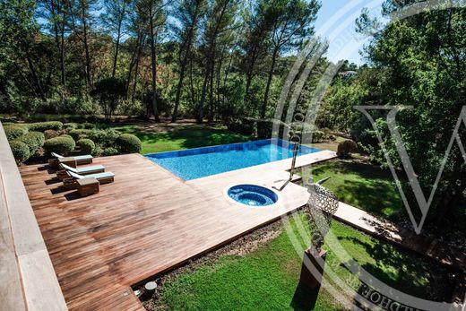 Its wooded architecture, pure lines and panoramic bay windows offer total immersion in Provencal nature, while guaranteeing top-of-the-range comfort. The villa boasts five en suite bedrooms, a large, bright living room, an elegant office, a fully equipped kitchen and a separate staff apartment.
