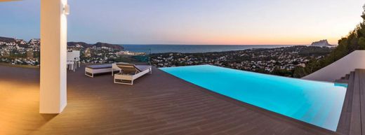 New construction in Moraira, with over 400sqm, facing the sea and south on a plot of 900sqm, terraces 480sqm, plus paths and driveway with 200sqm. Overwhelming sea view, sun all day long!
