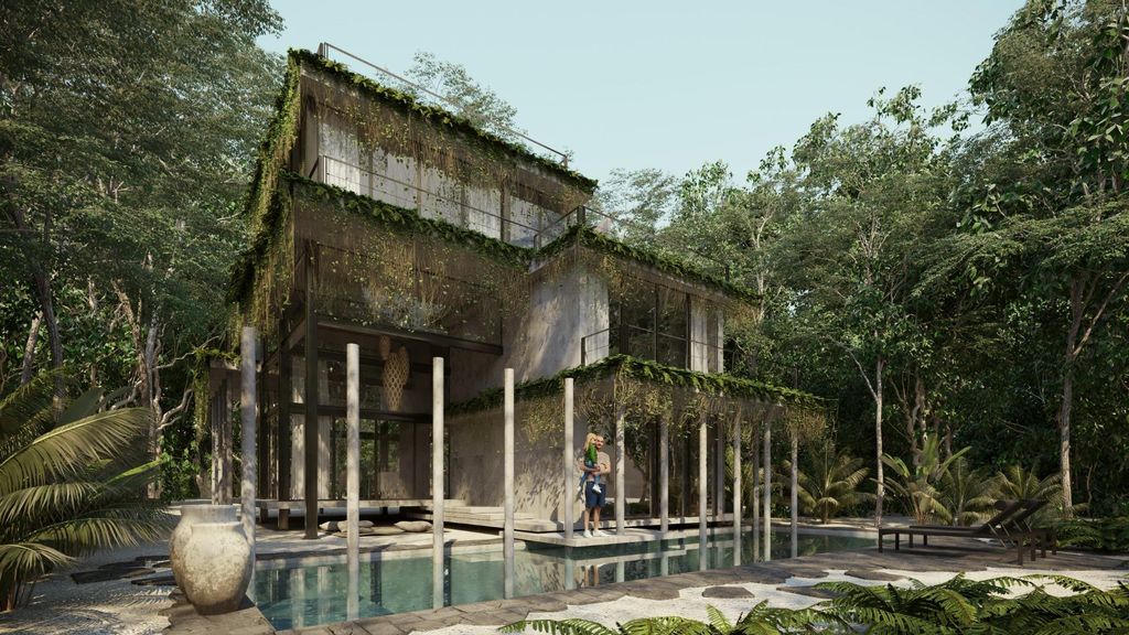 Villa Wabi Sabi is a property designed to subtly integrate with the environment and that will become perfect and unique over time. The sustainability of the property is highlighted and it is presented as an example to follow for future developments in the Riviera Maya.~~It has an automation system that can be managed from any Smartphone or Tablet, it is a modern and technologically advanced property. ~~The villa has an area of 211 square meters with a living room, kitchen, 4 bedrooms, three bathrooms and a toilet. In addition, it has a swimming pool on the upper terrace, air conditioning, smarthouse, automatic fire extinguishers, observatory and solarium.~~It is a unique, modern and sustainable property that offers a comfortable and technologically advanced lifestyle in a naturally beautiful environment.~ ~Reference V2494-ZT~~