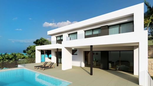 Stunning Villa with Sea Views Escape and unwind in this exceptional villa situated in the area of the Costa Blanca, boasting breathtaking sea views. This villa offers a spacious and airy layout, where the boundaries between interior and exterior spaces are blurred, creating a harmonious flow throughout the property. Light colors, wood, and abundant natural light from outside accentuate the villa's modern design. Access to the property is via the upper floor, featuring a grand entrance hall that leads to the two sections of the villa. The three bedrooms, including a luxurious master suite with a private terrace and a stunning en-suite bathroom, are located on this level. The remaining two bedrooms each have en-suite bathrooms and access to a large terrace. The ground floor hosts the villa's day-time areas, consisting of a spacious open-plan kitchen with a striking island, a breakfast bench, and views of the porch. The summer dining area is situated towards the sea and offers a barbecue and outdoor bathroom. The living-dining room flows seamlessly onto the exquisite porch, featuring several seating areas next to the infinity pool and jacuzzi, allowing for uninterrupted views of the Mediterranean Sea. This exceptional property has an additional surprise, a basement of nearly 30m², complete with a porch and private terrace, providing ample space for an extra bedroom, a work area, or a personalized retreat. For more information, contact us!