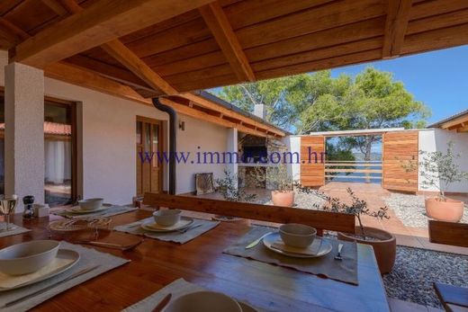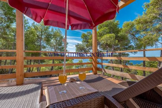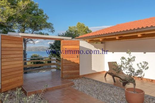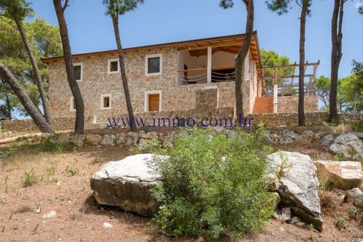 Beautiful stone villa for sale, located in a secluded area, only 20 m from the crystal clear sea and beautiful beach, on one of the islands near Trogir. The villa was built in 2012 from solid stone blocks, has a total area of 308 m2, fully furnished and equipped with quality appliances, has underfloor and wall heating so it can be used in winter. The villa consists of a spacious living room with fireplace, fully equipped kitchens with dining area and four bedrooms, each with private bathroom. The living room has access to a spacious terrace overlooking the sea. In the courtyard of the villa there is a stone barbecue, a covered terrace with a dining room and a tavern. The plot is surrounded by a stone wall, providing the owner with complete privacy.