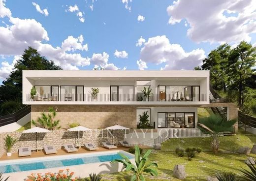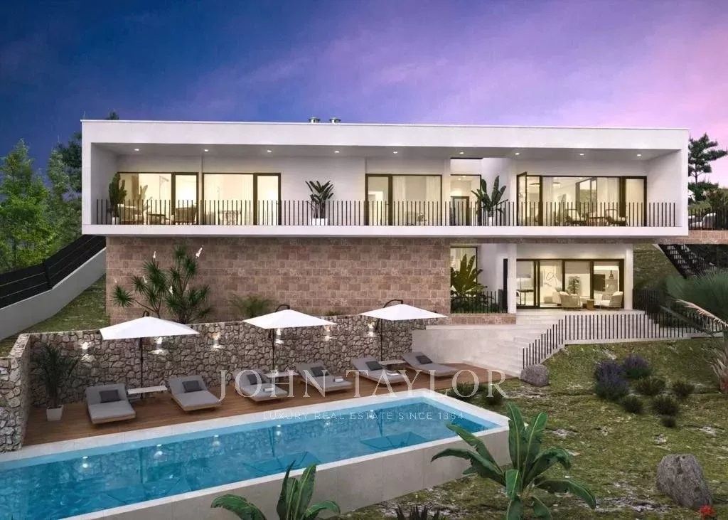 Modern villa under construction in Costa de la Calma. This house can be delivered in 2025. It is being built on a sloping plot bordering a green area. You will enjoy nice views to the pine trees and the mountains. Cars are parked on the same level as the street and then go down to access the house which is located on the natural slope of the land. The house consists in total of a living room, a fully equipped kitchen, a laundry room, an office, 4 bedrooms and 4 bathrooms. There will be several patios which together with the large windows will give a lot of light to the house. On the terraces and the solarium next to the pool you will be able to enjoy outdoor living.