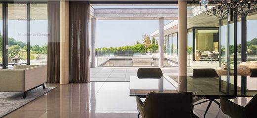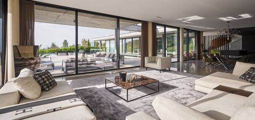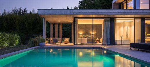 Sublime architect's house is located on a large plot of 2200 m² and offers 13 rooms. Built with high quality materials, this property is distributed over an impressive interior surface of more than 755 m². Its 6 complete bedrooms and suites are very comfortable and its large open-plan living spaces are very bright. The property has many top-of-the-range services, including a SPA with jacuzzi, sauna, hammam, gym, cinema and not forgetting an indoor and outdoor swimming pool. An elevator serving all levels of the villa and an outbuilding with company apartments complete the premises. Its many terraces will be perfect for enjoying sunny days, as well as the enclosed garden with trees. The property is located in the exclusive commune of Anières, close to the lake. The shopping center of Vésenaz is less than 10 minutes away and the center of Geneva about 20 minutes. In a very residential area, all amenities are nearby.