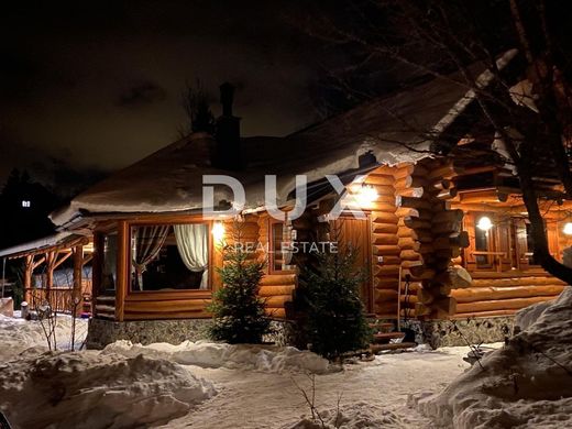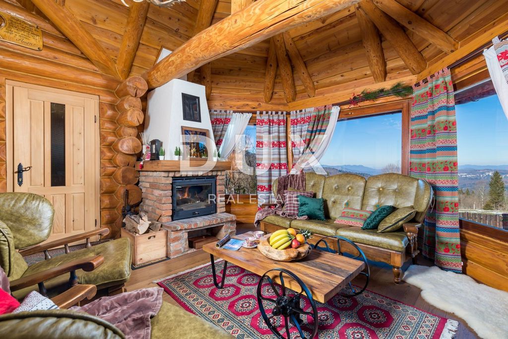 We are selling a beautiful wooden villa with a swimming pool and wellness! The villa is located in the Kupjak settlement in the very heart of Gorski Kotro. It consists of the main building where there are two bedrooms, a spacious living room, a kitchen with a dining room, a gallery and a balcony. Next to the main building there is a covered gazebo with a barbecue and a swimming pool that is in the final stage of being equipped. The villa also has a separate commercial facility with a wellness facility that includes a jacuzzi, sauna, shower, toilet and a beautiful terrace with a view of the mountains and surrounding villages. Heating in the buildings is underfloor, and in some parts there are additionally glamox panels and a wood-burning fireplace. The villa has a spacious garden of 1800 m2 where there are also two parking spaces. It was built in 2012, and the owners invested in the villa every year in order to provide future customers and clients with the best possible/luxurious accommodation. The villa has all the necessary papers and is ready to welcome its new owners.