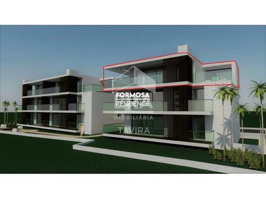 Type T1 apartment on the 2nd floor inserted in a development consisting of 8 apartments 50m from downtown Cabanas de Tavira with the end of construction scheduled for June 2024. Modern architecture building with large glazed balconies and north-south sun exposure. The living rooms and bedrooms will have floating floors and air conditioning and the bathrooms will have underfloor heating. The water will be heated using photovoltaic panels and a heat pump. All apartments will have 2 parking spaces in the basement which can be accessed by elevator. You can also enjoy a swimming pool common to several buildings in the surrounding area.