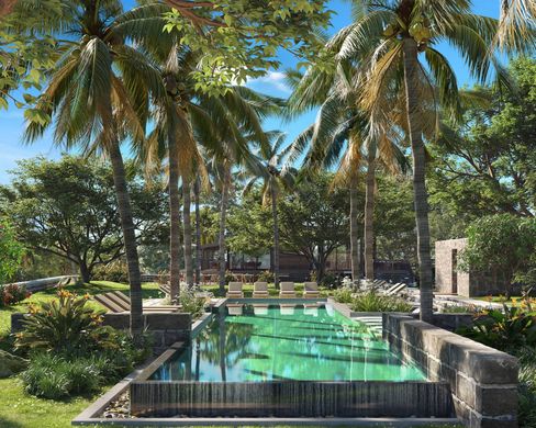 Pristine beauty and serenity await in this rural wellness community of Anahita Beau Champs. The perfect setting for a harmonious living experience, this 3-bedroom villa is a must-see for all nature lovers! With a combination of contemporary and rustic architecture using natural materials, this villa offers a harmonious layout of space, from the entrance to the main garden and swimming pool, as well as the living room and expansive veranda. Additionally, you will have the pleasure of exploring a lush tropical garden filled with indigenous plants. While all the bedrooms are a haven of calm, the superb master suite includes a large bedroom, dressing room, glass en-suite bathroom, and spacious outdoor shower. Sold off-plan, this is your time to experience gracious living. Do not hesitate and contact us for a visit.