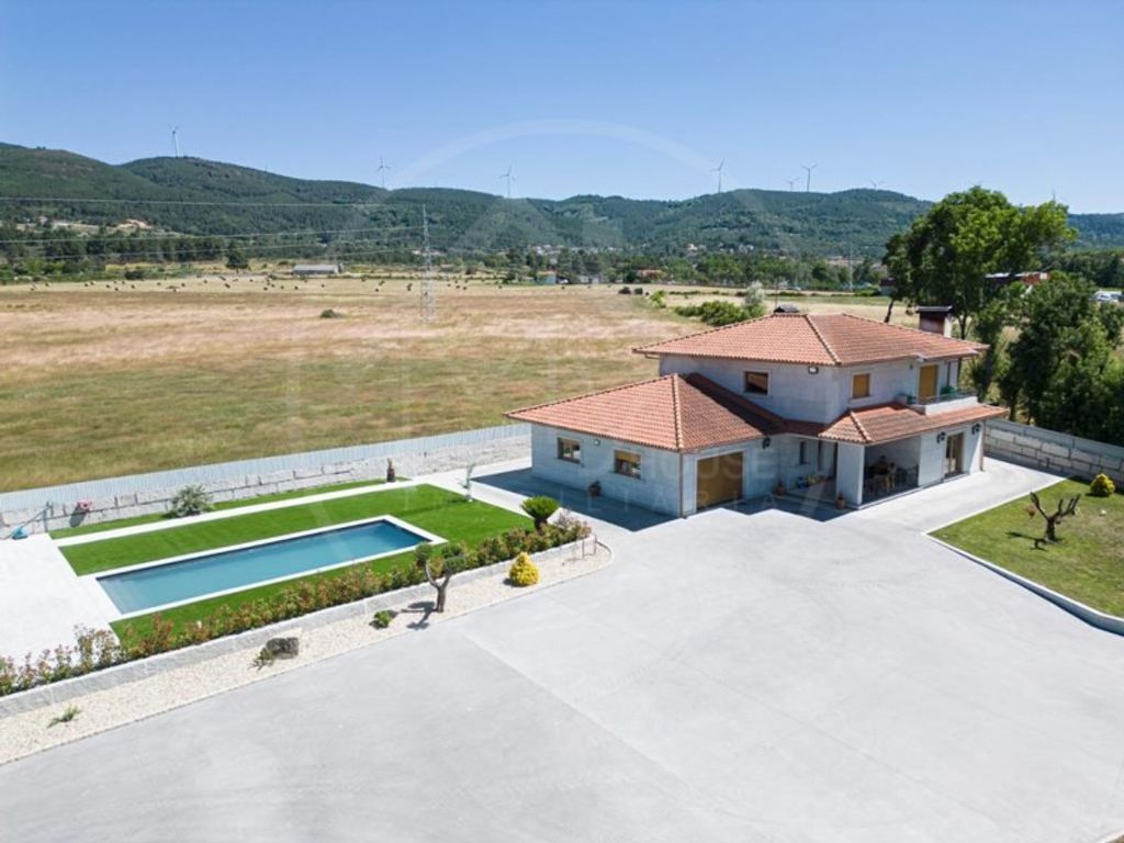 Excellent 4 bedroom villa with 475 m2 of gross area, located just a few minutes from the centre of Pedras Salgadas. This villa is set in a plot of land measuring approximately 1900 m2 and comprises a basement, ground floor and first floor. On the ground floor there is an entrance hall, living room, fully furnished and equipped kitchen, 1 guest toilet, office and a suite. On the first floor there is 1 suite, 2 bedrooms and a full bathroom. The basement has a laundry room and a utility room. This A energy rated villa stands out for its modern, high quality finishes. It also has built-in wardrobes and PVC tilt and turn windows with double glazing. The ground floor is granite and the upper floor is parquet. It is equipped with underfloor central heating. It also has an annex with an open plan kitchen and living room and 1 suite. Garage with automatic gate and access gates to the villa are also automatic. This villa also has a swimming pool with heat pump, garden, a large patio and porch. All the garden walls are made of yellow granite, with integrated lighting. It also has a great location and excellent sun exposure. Energy Rating: A