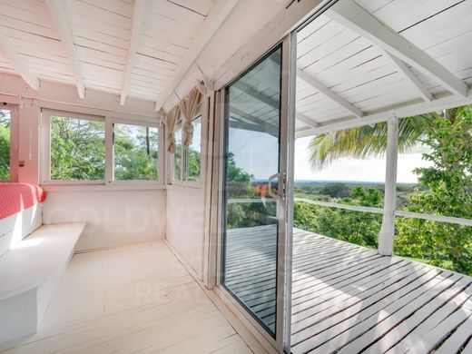 B/ The second house, wooden and more rustic, also has sea views. It is a charming house with 2 bedrooms and 1 bathroom distributed over three floors (the third is an attic that could be converted into a third bedroom or a large office, as it has air conditioning). On the ground floor there is a kitchen and a dining room. On the second floor there are two bedrooms, a dressing room, a bathroom and a large white wooden terrace overlooking the ocean. This house is completely independent of the larger one.