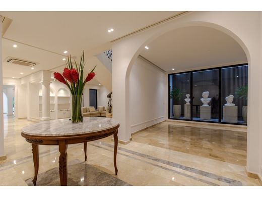 The Parisian style of this house is a mix of old and new design, a space where traditional and more modern elements coexist under the same roof, creating a sober but avant-garde atmosphere at the same time. The color palette to be used is made up of pastel tones. in open spaces. Distribution: front garden with natural plants, arrival access with reception room, main living room, dining room, kitchen. Terrace alternates with the kitchen with direct access to the garages where two covered cars and two outside can fit comfortably. Automatic access gate to the garage from the outside. Social bathroom, rest terrace, patio decorated with many silver pieces, Zen garden. Picturesque black wrought iron staircase in the shape of a spiral that transports us to the second floor terrace which is designed to spend many nights with friends or privately under the stars romantic plan in a jacuzzi having a glass of wine. In the center From the house there is an elegant staircase carved with bronze that takes us to the second floor where the living room is located with a French style wooden furniture with rattan that highlights the elegance of the space and that communicates with a Romeo and Juliet style balcony with a view. to Carrera 57 where you can see the leafy trees of yesteryear, creating a charming natural environment. Around that living room are the 3 bedrooms with their bathrooms whose designs elevate the elegance of the entire house designed by an interior decorator from an exquisite taste dedicated entirely to high turmeque art. The taps are luxurious with many details. The following predominate in their environments: 1.*Moldings on ceilings and doors: 2.*Lighting.3.* Bathtubs4.* Antiques5.* selection of fresh flowers and plants. What is not included in the house: Furniture dining tables sofa lamps decorative accessories inside the 2 ground floors refrigerator washing machine and dryer. Area:Lot 500.84 meters Construction area: Ground floor: 577 meters Appraised 4 years ago 2,138 mmContact: Rossana Ulloque cell phone. 3205178956