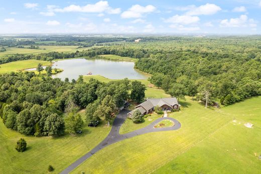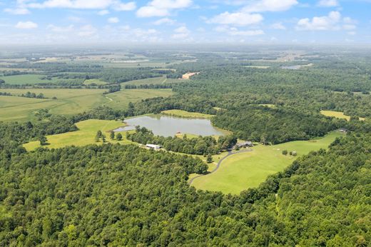 The Lost Lighthouse Ranch, as the current owners have named it, is the perfect melding of luxury, peace and 130 fabulous acres of nature. It begins on the approach down the wooded half mile long drive and opens up to fields of horses, wildflowers, native grasses, etc. to the main cedar shake residence which blends perfectly with the landscape. You will be taken aback by the natural beauty of the property the moment you arrive. The landscape beds are filled with flowers to adorn your every room as well as edible landscape and raised bed gardens filled with blueberries, lettuces, beans, tomatoes and more. There is even a small orchard of pear, peach and apple trees. Additionally, there is a massive tree canopy of 70+ acres of hardwoods and other varieties that have remained untouched since 2008. The front walk and porch are made from stone found on the property. Upon entering through the front door you will be captivated by the wall of windows and the stunning views beyond. The more than 16 acre lake is your primary view while the long range view to the farthest vista is a measured 27 miles away! Not to be underestimated however, are the details and fine finishes of this luxury property. The foyer is flanked by a formal dining room and home office/library with custom built ins and 10 ft ceilings. The massive gourmet kitchen and den showcase the wall of windows amid the many features they provide themselves. The European styled kitchen has high end appliances such as a six burner Blue Star RNB36 stove with oven/convection, GE Cafe Dishwasher and refrigerator. Granite countertops. custom cabinetry, artistic backsplash fashioned of wine corks, sea shells and open shelving finish the look and feel of this amazing culinary haven. The king-sized, well appointed pantry is an added bonus. The den has a cozy wood burning fireplace with stone facade and hearth as well as a shaker style wood mantle. There are three spacious bedrooms, one with en suite bath and the other two with shared bath, and laundry in one wing of the house. The other side has a formal living room with vaulted ceilings and a gas fireplace and the primary suite. The massive primary suite is a story all of its own with a three sided fireplace, two walk in closets, a trap door to a storm cellar and a spa like bath that you wont believe! There are separate vanities, a large soaker tub, sauna, heated towel rack and a huge walk in shower with multiple shower heads and crafted of imported rectified Italian porcelain. The guest/craft house is inviting with a cozy front porch to welcome you inside. Currently used as a craft house and home to a natural products production area. this space has a sleeping loft and full bath so could easily be used as a separate living area or commercial kitchen, workshop, etc. There is an attached greenhouse and 400 AMP electrical service too. The 3 fenced pastures have great grazing grasses, auto-waterers, border and cross fencing. A 5 stall barn with tack/feed room has hay racks and fans in each stall and is conveniently located near the main house and horse pastures. There is another large horse barn in the back acreage of the property that has plenty of room for an arena and training area. Nearby, there is a fancy chicken coop to keep your hens happy and producing. There are approximately 5 miles of riding/hiking trails. There is an equipment barn and storage barn. The highlight however is the 16 plus acre lake! Fifty-five feet deep at the deepest point it is brimming with bass, bluegill, catfish, sunfish and more. A stainless steel and trex decking maintenance free covered dock and boat slip is the perfect spot to enjoy the sights and sounds of the lake. Solar powered cafe lights take the enjoyment from day into night. Just 20 minutes to a private airport or hospital. Underground utilities, geothermal heat/air, 400 AMP electric service and awesome water pressure. This property is truly a treasure.