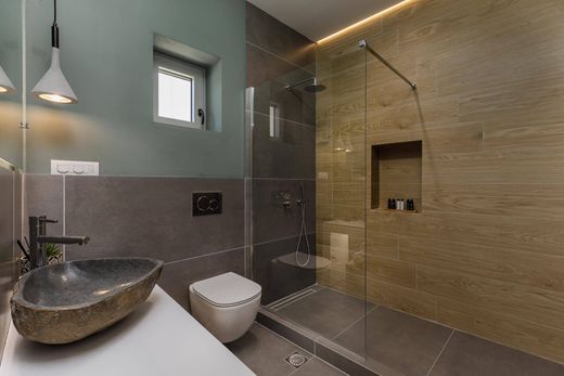 The construction has been made with stone from Paxos, combining traditional architecture with modern furniture.