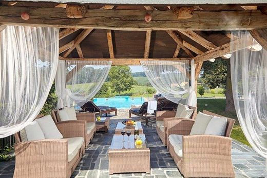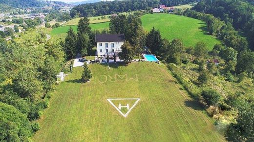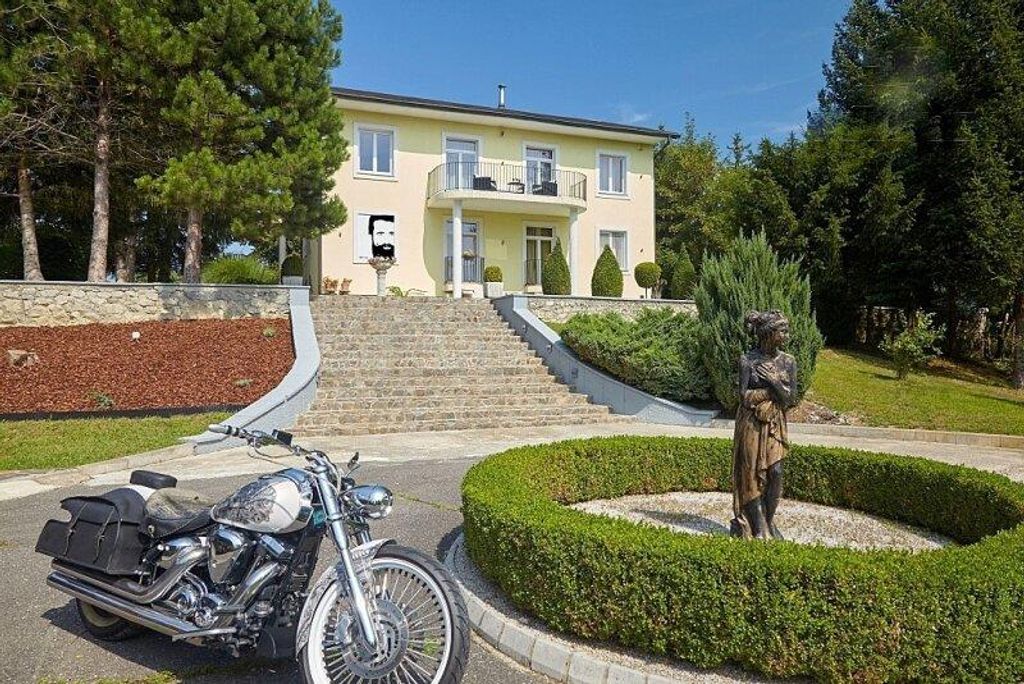 Finally, an offer FAR from the average... This exclusive property was built on approx. 20,000 m² in solid brick (60s brick) in 1970, taken over in 2010 and continuously renovated until 2018. This villa stands out from other properties due to its timeless conception and a multitude of exclusive highlights. The exclusive property is perfectly embedded in the beautiful landscapes of the southern wine country and is guaranteed to fulfill all wishes! It will inspire you immediately. On the ground floor there is an anteroom from which you can reach the walk-in wardrobe, the large living-dining area with an open, equipped kitchen and access to the terrace and the toilet. There is also a small living unit on this floor with an extra entrance, a large kitchen-living-dining area, a bedroom, bathroom and toilet. On the upper floor you will find a beautiful, comfortably furnished, large living area with a grand piano and a cozy fireplace, a large bedroom with an extra walk-in closet, an office and a bathroom with a huge shower and a toilet. In the basement there is another living area with a bedroom, a large wellness shower, a whirlpool and a sauna - relaxation is a top priority here! There is also a small bar. The house is heated with an inverter. The outdoor facilities have also been designed with great attention to detail and will delight you. In the beautifully landscaped outdoor area you will find a small pond, a large terrace with a bar and a covered dining area. Of course, the pool with sunbathing areas cannot be missed here. An additional highlight is a fully restored T55 original tank in the driveway area and the helicopter landing pad at the rear of the property. There is plenty of covered parking. An alarm system with video surveillance ensures your safety. Special advantages of this unique offer: - Living at a breathtaking level - Peace, view, nature - Pure relaxation at home - Highest quality construction and equipment - Light-flooded feel-good/wellness oasis - Sauna, whirlpool, - Air conditioning - Extensive kitchen equipment - Raised room height - Sound system inside and outside - Indoor fireplace - 4 carport spaces - Alarm system and video surveillance - and much more. There are also 2 small residential units (tiny house style) on the property that could be perfectly rented out. The high-quality inventory is included in the purchase price! Arrange a viewing - come in and you are guaranteed to feel at home... The agent works as a double agent. Would you like to sell a property? We will be happy to help you achieve the best possible purchase price through our Europe-wide marketing both online and through our internal international database of interested parties (with private customers, property developers and investors). Or do you know someone who would like to benefit from these advantages - give us a tip - we will thank you with generous tipster commissions Infrastructure / Distances Health Doctor <3,000m Pharmacy <4,500m Children & Schools School <2,000m Kindergarten <5,000m Local supplies Supermarket <1,500m Bakery <4,500m Shopping center <7,000m Other ATM <2,500m Bank <2,500m Post office <2,000m Police <8,000m Transport Bus <2,000m Motorway connection <1,000m Train station <2,500m Details Distance as the crow flies / Source: OpenStreetMap Directly on the border with Austria on the Slovenian side is this exclusive property with a wonderful view of the vineyards in an absolutely quiet location! Nevertheless, it is only 4 minutes to Sentilji, where various shops, doctors, a school and a kindergarten can be found. You can reach the Austrian border in 5 minutes. Energy certificate in progress! Errors and incorrect information excepted! We would like to point out that we act as a dual broker in accordance with Section 5 of the Brokerage Act.