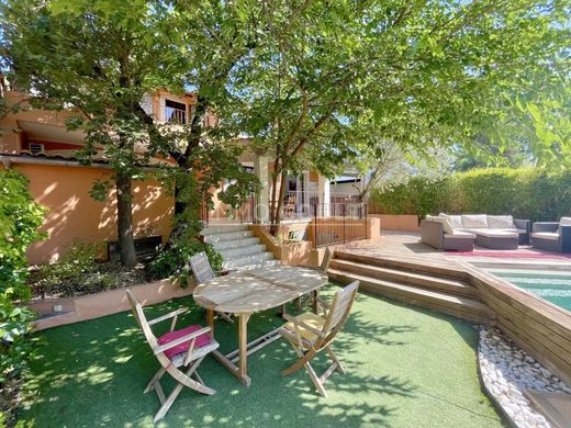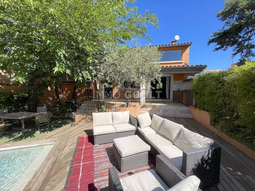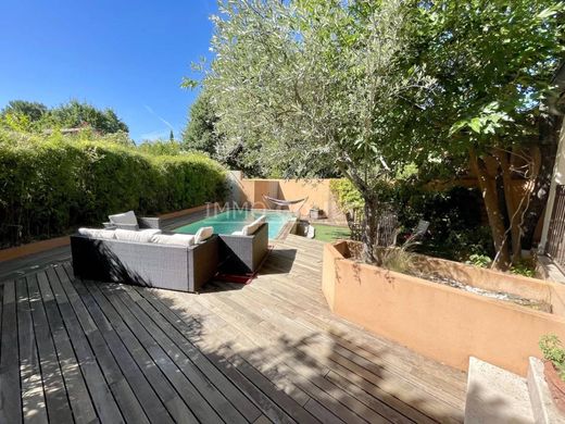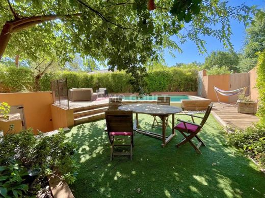 The enclosed garden of around 200m2 is shaded by Provençal trees. A covered terrace and an infinity pool adorn the house. A large awning and a wooden shelter complete the set. The private domain also offers a communal swimming pool and a tennis court.