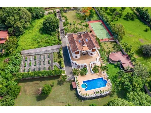 Beautiful Atenas Mountain Estate includes 4 bedrooms, and 3.5 baths along with an outdoor shower, private tennis court, pool, and Jacuzzi. Dozens of fruit-bearing trees including banana, mango, avocado, and citrus. This beautiful retreat estate is located in the mountains of Atenas, Costa Rica, and is only 32 miles from the nearest beaches and marina. Perfect for a family vacation, reunion, or yoga retreat. This secure estate offers everything you see in the photos and more. Indoor features: 100% concrete construction 3 level mansion style residence All appliances included Extra high ceilings Hardwood teak floors Granite countertops TV room Office Entertainment room Travertine in Bathrooms Terrace Views from every room Alarm system / Phone line / Solar panels for garden lighting/AC Outdoor features: Tennis court Basketball court BBQ ranch with 2 bedrooms, 2 bathrooms, and a kitchen Clay tile roofs 8 car parking spaces The entire property is surrounded by retention walls Electric-operated main gate Garden sprinklers Green Garden Great location: 6 minutes away from Atenas city 15 minutes away from the airport 20 minutes away from Santa Ana city (Shopping malls, Bilingual Schools, Movie theaters, hospitals, restaurants, business parks)