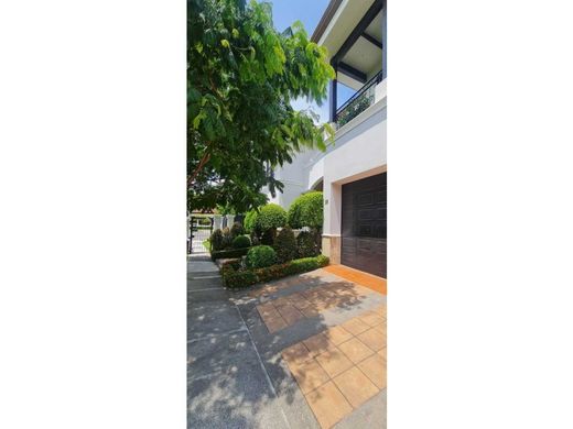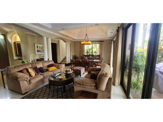 Hacienda de Sol, Jardines del Sol, Río Oro - Santa Ana area Lot: 650 m2 Construction: 450 m2 Year of construction: 2003 Purpose: House with excellent views on all sides and more importantly, the unbeatable breeze from the East 24 hours a day in addition to the perfect sunsets to the West, which can be appreciated from the two balconies of the children's rooms. Features: The house has 2 floors, each floor has central and independent A / C with a separate unit, a 10,000 liter pool with a Jacuzzi and a built-in heater. The house has 5.5 bathrooms and an additional maid's room with its respective bathroom. The garden has a programmable irrigation system in zones and with 24 sprinklers. The house has two sound systems installed, providing amplifiers to its different areas (terrace, bedrooms, kitchen, pool, office and guest room and bathroom). The house has a water reserve tank under the garage, with its respective pump and pneumatic tank. The control room is next to the garage, where the internet and telephone exchange wiring is also consolidated. The garage can accommodate two cars. The house also has ceiling fans and metal chandeliers in several areas, all of which are included and working perfectly. The spacious kitchen is equipped with a double Monogram refrigerator, as well as a small beverage cooler, and is equipped with a dishwasher, electric stove, built-in oven with its extractor fan, and a TV with a UPS in the kitchen. The house is properly equipped with a full surge protector. The house also has a professional Yamaha THX 7.1 Surround sound system in 7 independent zones plus another Bose sound system on the 2nd floor for the other living room. First Floor: - Main entrance to the Living Room, Dining Room and Great Room, with direct access to the roof terrace, Guest Room with its own bathroom and walk-in closet, Guest Bathroom, kitchen, terrace, pool, filter room with shower and bathroom, with a garden surrounding the house. Second Floor: - With wide stairs and 3.60 meters of height between floors, it takes you to the secondary entertainment room of the house and from there it is connected by means of a wide hallway to the three adjoining rooms and at the end, the master bedroom. This hallway has large closets for all kinds of objects, be it toys, linens, blankets and suitcases. - Each room has its own bathroom and walk-in closets and each with large balconies. - One of these rooms is occupied with an additional Turkish bath - The rooms have large doors and all have their sliding screen door for excellent natural ventilation Common area: The common use area and has a clubhouse, equipped with furniture for all types of occasions, a fitness area duly equipped with the most modern sports equipment and with its own deck, the pool has all types of depths up to 1.70 meters plus it has an external attached Jacuzzi. Attached are areas for children's games on natural grass, a tennis court and multipurpose courts for all types of sports are being finished Security: Hacienda del Sol provides 24x hour constant supervision through both its motorized security and also, through continuous monitoring by its internal CCTV system. Additionally, the Jardines del Sol Sub-Condominium has its own additional CCTV system with additional private gates. Price: USD - $ 850,000. Maintenance Fee: USD - $ 350