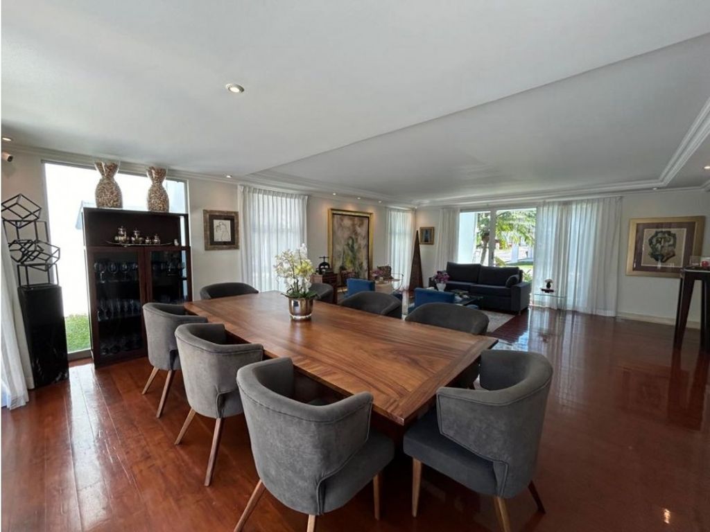 Spectacular 3-level home with 4 bedrooms, each with its own bathroom. First level: Swimming pool, Living room, Dining room, Den, Kitchen, Maid's quarters, Office with AC, Terrace, Second floor: 2 secondary bedrooms, each with its own full bathroom and AC, TV room, Third level: Marble and bamboo floors, Condominium features a pool and clubhouse.