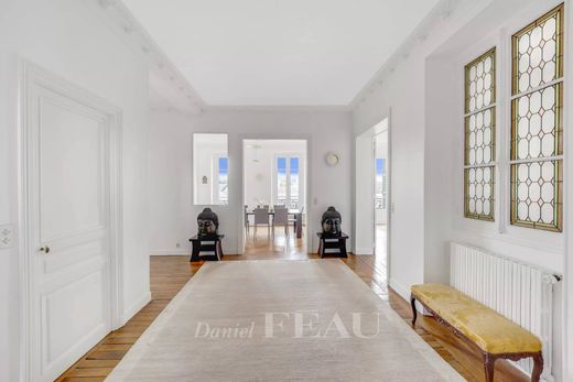 Offering 271 sqm of floor space and 266 sqm of living space as defined by the Carrez Law, it includes a spacious entrance hall with a security door, a living/reception room, dining room and library featuring 3.20 metre high ceilings with mouldings, a fitted kitchen with dining facilities and a pantry (also accessed by means of the service staircase), four spacious bedrooms, two bathrooms and two shower rooms.