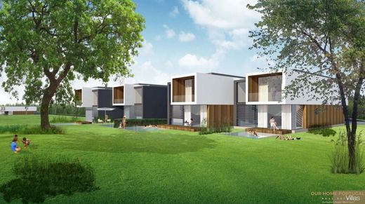 20 semi-detached villas of two floors in typology T3, will have the villas implanted in amphitheater oriented to the central core consisting of the pool and surrounding areas.