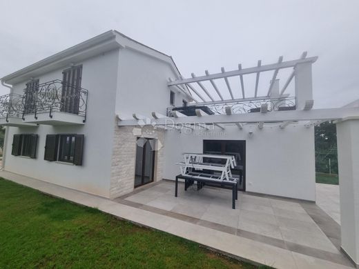 We received a newly built villa with a swimming pool in Hrboki. On the ground floor there is a kitchen with a dining room and a large living room, a bathroom, a tavern for socializing and a terrace with a pergola. On the first floor there are two bedrooms with two bathrooms. There is a 32 m2 swimming pool with an outdoor shower in the garden.
