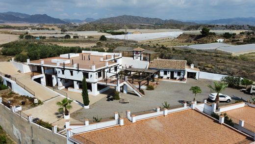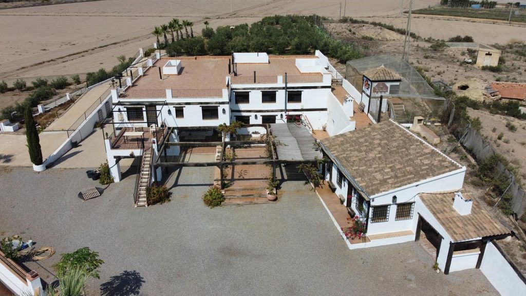 Only 5 minutes from the wonderful beaches of the Costa Calida we find this dream property surrounded by nature and overlooking the bay.~~1.552 square metres of construction on a totally fenced plot of almost 8.000 metres with 7 spacious stables with horse yard and everything necessary for their care.~~Upon entering through the automatic gate we can already appreciate the taste and care that has been put into this beautiful cortijo. Its south facing orientation allows the 6 buildings that make up this property to be kept illuminated by natural sunlight. ~The main house situated on the ground floor with a surface area of 361 m2 is divided into a living room, kitchen, 4 bedrooms, 4 bathrooms, pantry, cellar in the basement, garage, covered porches and terraces where we find beautiful corners decorated with fountains, paintings and engravings of horses.~The first floor can be accessed either by stairs or by car via a side ramp. This house consists of living room-kitchen, living room, 3 bedrooms, 2 bathrooms, pantry, storage room, porch and terrace with outdoor kitchen, oven and barbecue.~Both houses have bars and mosquito nets on windows, rustic floors, wooden carpentry and solid wooden doors. Furniture negotiable.~~Adjacent constructions include:~A house-cave of 46 m2 to reform.~A warehouse of 72 m2 easily convertible into a flat.~Covered warehouse of 205 m2~Various storerooms with gates used as garages and stores for equine tools.~A large covered area of more than 300 m2 with a studio with kitchen, bathroom and porch attached to the 7 stables, horse cleaning area, fodder storage area and silo.~On top of these buildings there are several sun terraces with wonderful views of the sea and surrounding mountains.~~On the property there are also 3 cisterns with a capacity of about 500 m3 of rain water.~Irrigation water from the irrigation canal of Pulpí.~Drip irrigation.~200 olive trees with an approximate production of 1.000 kilos.~Various fruit trees, palm trees...~Large aviary or chicken coop.~2.000 m2 of land plus covered area. ~~This property and all the constructions have all the documentation in order. Please contact us to visit it.~~