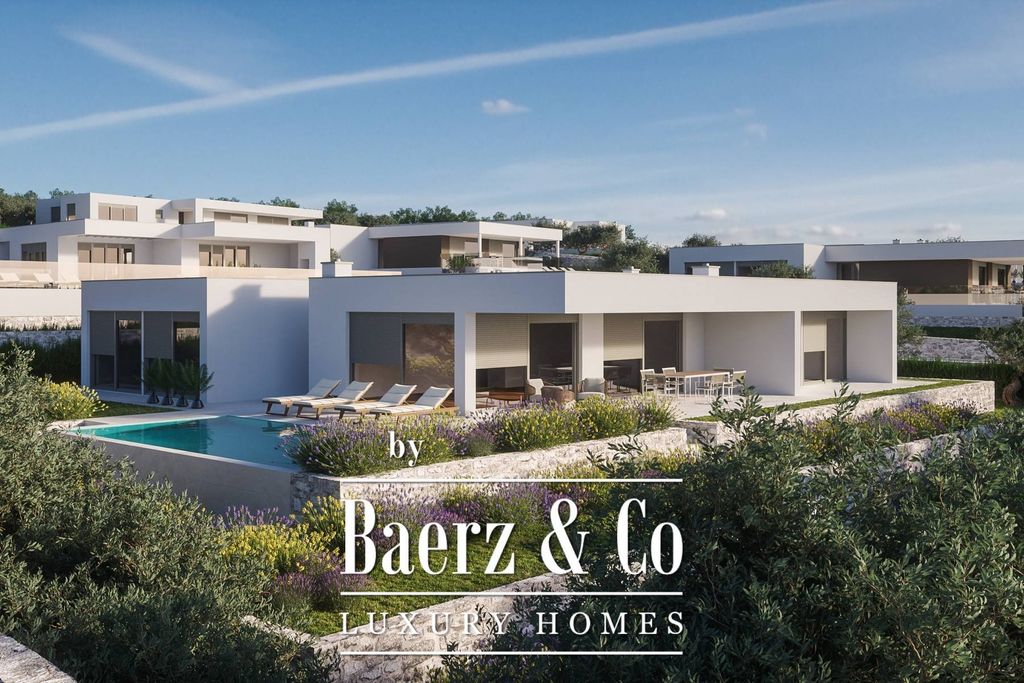 Luxury one-story villa as part of a modern complex of eight one-story villas. During the design and construction attention was paid to every detail, from the choice of equipment to the position of the villas, so that every future owner would have an unobstructed panoramic sea view and maximum privacy. All villas will have a one-level layout, designed in cascade.