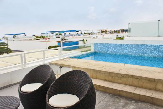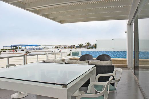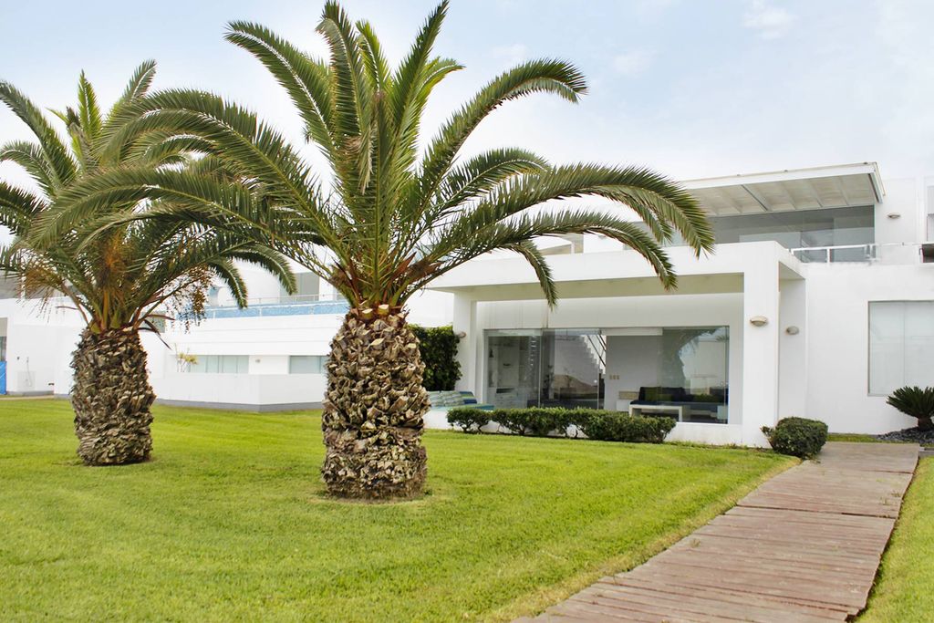 Beautiful house on 2 levels located in the third row overlooking the sea in the Playa Del Golf condominium in Asia (First Stage). Remodeled in 2010, it has 5 large bedrooms each with bathroom, half guest bathroom, 2 living rooms, 2 large terraces, heated pool and barbeque. Capacity for 20 people. It has 2 parallel garages inside the house. The terraces area is 80.40m2. Registered in PR. Entry fee: S / 50,000. The club is 20 years old and offers beautiful green areas, sports courts and swimming pools.