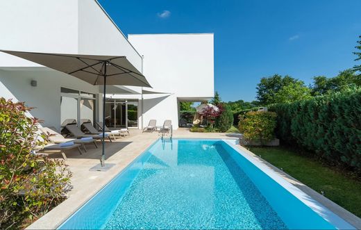 In the beautiful town of Žminj, there is this superb modern villa with designer interior, indoor swimming pool and wellness studio.