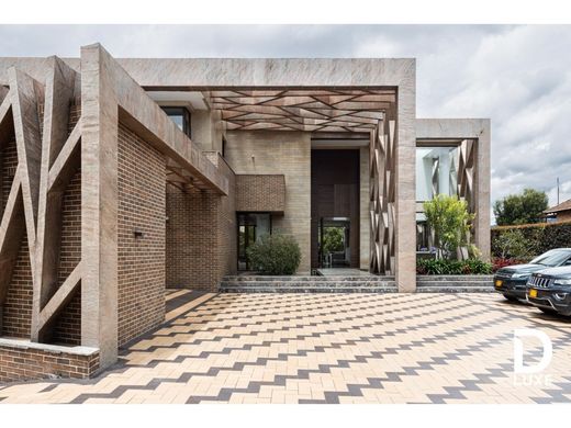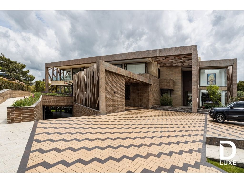 THE GALERY HOME Dluxe presents this incredible mansion which, thanks to its impressive and spacious spaces, will become the ideal place to live with your family surrounded by green areas in one of the best areas on the outskirts of Bogotá but close to the city. . It is in our Bogotá Savannah in the renowned San Jacinto de Chía Residential Complex and Club. The lot measures 3,431 m2 with a constructed area of 2,032 m2 1,234 m2 of green areas 291 m2 of planters, part of which has marble borders and automatic irrigation system marble-lined water mirror largely covered in a canopy 1,112 m2 of uncovered terraces and 286 m2 of covered terraces 98 m2 of balconies with marble floors and walls, aluminum railings and tempered glass. The construction is modern with a unique architectural style where most of its exterior walls and terrace floors are covered in marble with fine carpentry, large windows, high-end floors inside, intelligent automation, sound system in each room, underfloor heating system. and in general it is built with the highest quality materials. Everywhere you look, it is cozy and pleasant with a design that integrates the interior and exterior to live and enjoy each area of the house. Both the basement and the first and second level areas are connected by stairs and a comfortable elevator for up to 8 people. On the first level we find an imposing double-height living room that houses a large gas fireplace, an office with space for a meeting table, a dining room, a kitchen with top-of-the-line appliances, an auxiliary kitchen with a dining room for service personnel, two cupboards, an implement room. toilet, an automation and network room, a bar with a bar and space for billiards, a TV area, a beauty salon, a massage room, a children's game room and a large gym. In the private area we find the main room which has two large walk-in closets on two levels. One of them is designed as if it were a luxury store and has an exit to the private 60 m2 terrace. The bathroom consists of two Jacuzzi sinks for 5 people with TV, double shower with marble walls and floors. In addition, we find on the second floor three auxiliary rooms, each with its own walk in closet and private bathroom, in addition to this, an eApartastudio, a living room, an oratory and a linen room. It should be noted that this level has a guest suite with two bedrooms for up to six people and a private bathroom. The outdoor spaces are complemented by: a car wash room, an access bay for parking 5 or 6 visitor cars, a parking space for two cars for daily use. Among other details that complement the outdoor area are a half basketball court, mini soccer field, BBQ area covered with a canopy, 148 m2 of planters with marble edges and automatic irrigation system, 827 m2 of green areas with well-developed and well-worked gardens, living room outdoor tea room with cover and a terrace for events of 114 m2. It has a large basement of 969 m2 where you will find: a covered garage for 6 or 8 cars, 4 motorcycles and bicycles. A large office for the administrator of the house, a chauffeur's room with its bathroom, a large room for all types of sports accessories, a boiler room that provides heating and hot water for the entire construction and a room enabled for a future power plant. . Among other things we can find water storage tanks, laundry with several hoppers for handling different types of clothing, two rooms for employees with a bathroom and shower, a gardening tank, an immense 168 m2 warehouse and an internal patio with a vertical garden to liven up the view. The garage space in which a swimming pool could also be adapted. In the garage you can organize large events for any type of celebration. The residential complex and Club San Jacinto make up a large, very safe and pleasant area for multiple activities such as 9 holes of golf, 10 tennis courts, soccer fields, areas for walking and cycling, private lakes and a social headquarters under construction that will have a swimming pool, squash court. beauty salon etc. Come and discover the pleasure of living in a unique place!