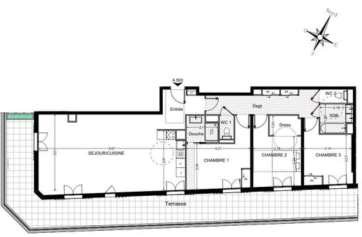 In the heart of Nice, in the Jean Medecin district, within walking distance of all amenities, we offer a 113.8m² 4-room apartment with 50m² terrace in a recent residence built to the latest standards.