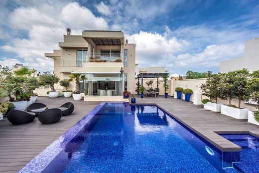 A Stunning semi-detached, designer villa, in one of the most desirable areas of Madliena. The property has a truly lavish outdoor entertaining area, with impressive infinity pool, various seating and sunbathing areas and an alfresco dining area ideal for entertaining. Internally on the ground floor the accommodation consists of a large open plan fully fitted designer kitchen with top end appliances, a spacious, bright living room with wood burning fire, large dining area and a separate breakfast area all overlooking the pool. On the first floor there are three bedrooms, main with en-suite, walk in wardrobe and balcony with stunning views, plus two further bedrooms and a separate luxuriously fitted family bathroom with a walk in shower and large bathtub. On the lower level, the accommodation consists of a separate study, a large open plan living area, a separate dining room adjacent to a fully fitted designer kitchen all overlooking a lovely private courtyard, as well as a guest toilet and an external shower room with access to the pool area via an outside staircase. This part of the villa has very flexible accommodation and could be used as it is or for a games room, gym, cinema, or as a separate flatlet with its own private access. This villa is a beautifully finished property, with an abundance of space on three levels. A good size contemporary outside space with swimming pool, grounds and a large open garage. Other features include a washroom on the top floor with a terrace leading off it, underfloor heating on the ground and first floor, solar water heater, photo voltaic panels, intercom system, alarm, reverse osmosis and CCTV. A truly remarkable bright and spacious property, finished to the highest of standards. There are a further two plots of adjacent land available for sale measuring 430sqm and 460sqm, each with a full development planning permit for a semi-detached villa including semi-basement and swimming pool. All three properties are Freehold. Viewing is highly recommended on this spectacular villa.