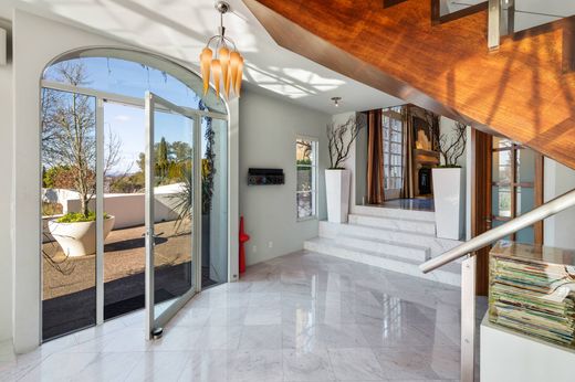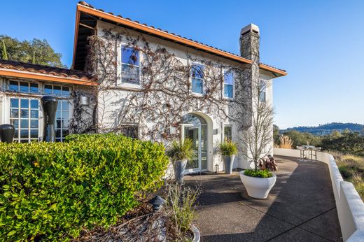 Nestled amidst the picturesque landscapes of Wine Country, Villa Moderna stands as an unparalleled private hillside estate, boasting an array of resort-style amenities and offering breathtaking panoramic vistas. This exquisite contemporary residence is a testament to the epitome of indoor/outdoor California living, fusing the elegance of traditional Mediterranean architecture with a touch of modern sophistication. Noteworthy features include heated Carrera marble floors, Philippe Starck fixtures, and a truly impressive gourmet kitchen. The estate expands beyond the main residence, encompassing a guest cottage complete with a well-appointed kitchen, stunning limestone-clad pool, rejuvenating spa, and meticulously curated Mediterranean-inspired gardens. Stretching over 8+/- acres, the property reveals a vast expanse of pristine grassland and century-old oak trees, a testament to nature's timeless allure. Conveniently located just moments away from Healdsburg's charming plaza and a regional jetport, Villa Moderna is a rarity in the realm of real estate, a manifestation of elegance that is both scarcely available and incredibly challenging to replicate.