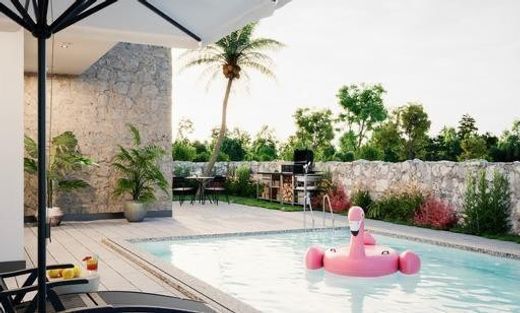 Just 2 kilometers from the sea, this modern villa is for sale, nestled on a 525 m2 plot of land. The villa covers an area of 240 m2 and spans two floors.