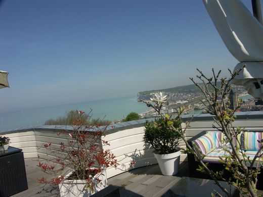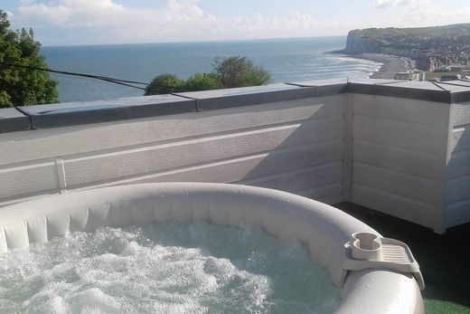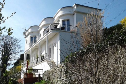 Architect-designed house, located in a green setting halfway up the cliff. The Villa offers an exceptional view of the sea and the city, 200 meters from the funicular which takes you to: casino, port, beach (250m walk), city center, 80m2 roof terrace with exceptional view of the city and sea . Very rare villa for sale of approximately 155m2, roof terrace of approximately 80m2 with breathtaking views, entrance, office, fitted kitchen, room/living room with fireplace, a bathroom, a separate WC, a bedroom. Central heating gas. B&B activity with three bedrooms equipped with a kitchen and bathroom, two of which have a spa. An outbuilding of approximately 40m2, a chalet of 12m2, two garages 20m2 and 14m2, land of approximately 1200m2. Information on the risks to which this property is exposed is available on the Géorisks website: www.georisks.gouv.fr Information Mr Christophe Bucaille: 06.84.13.24.18