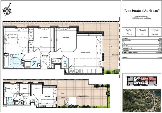 In this upscale residence located on Chemin de Clavary in Auribeau-sur-Siagne, discover this charming 75m² apartment featuring 3 bedrooms, 2 bathrooms, and a 102m² terrace with an unobstructed view.