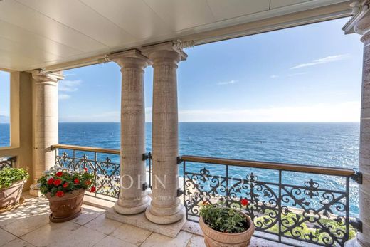 This fusion of two residences creates a remarkably vast space, offering breathtaking panoramic views of the Mediterranean Sea, stretching majestically from Italy to Cap Ferrat. Boasting a triple east-south-east exposure, this property is flooded with natural light and is equipped with a private lift, adding an extra touch of elegance and comfort.