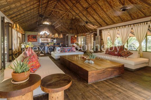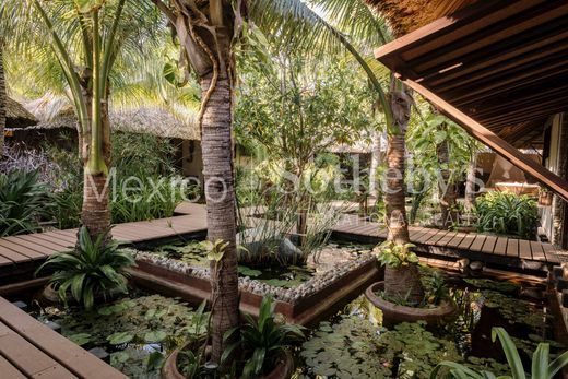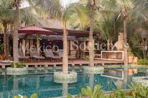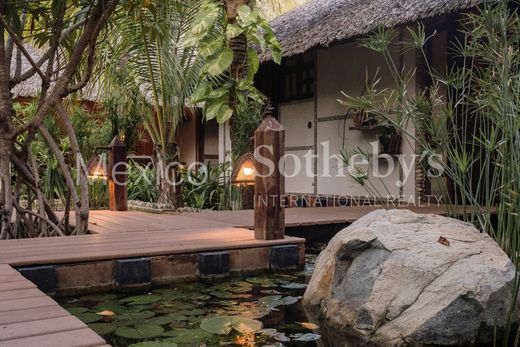 Spectacular house in Seis Olas, a condominium 15 minutes from the center of Puerto Escondido. One of the most exclusive complexes of 6 houses and a clubhouse with a large Palapa and pool. Hidden among nature, you can’t see the houses and they are connected by wooden paths that give it an oriental and glamorous touch. Entering Zen house, as its name says, is entering peace and absolute contact with nature; A wonderful wooden door welcomes us into this space that gives us the feeling of being in Bali, or a similar paradise. The entire house with wooden finishes, an open kitchen with a bar, a living room, and a dining room with access to a divine terrace equipped with a pizza oven and grill, a jacuzzi, and a wonderful pool full of palm trees. The best is the sea view. And it’s beachfront. Casa Zen is next to the clubhouse, which allows you to change the scene and enjoy different environments. The house has 4 bedrooms with a bathroom, spacious, with a unique touch, and distributed among ponds and vegetation in the area. In addition, 6 Waves has a paddle tennis court, spa, and a walking path.
