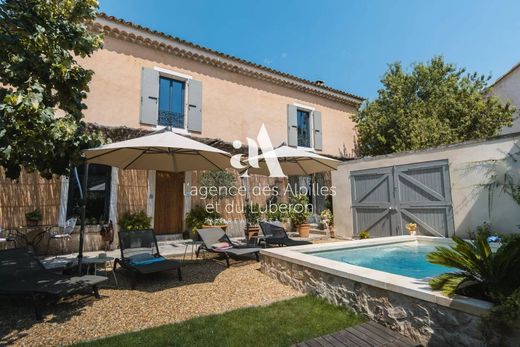 For sale in Oppède. Set in a peaceful location in the heart of the village , this charming 18th-century house has been completely renovated to a very high standard using the finest materials, creating a fine balance between modernity and old-world charm. It offers approx. 300 m² of living space with outbuildings. The ground floor comprises a beautiful living room with a fitted kitchen, a vast lounge-dining room with fireplace, a storeroom, a functional utility room and an authentic vaulted cellar. On the first floor, there is a study, a lounge and 3 beautiful en-suite bedrooms, one of which leads to a charming children's bedroom. There is a lovely dressing area that could be used as a 4th bedroom. On the top floor, a 5th bedroom completes the living space. The exterior includes a beautifully landscaped 705 m² garden with a pond, a shaded terrace, an artist's studio and 2 enclosed garages. The property's south-facing aspect, refined features and attention to comfort make it an easy place to live, close to all amenities, pleasant all year round or just on holiday. Oppède, in the heart of the Luberon, is an enchanting village that combines history, charm and natural beauty. Nestling on the slopes of the Luberon Massif, Oppède-le-Vieux captivates visitors with its cobbled streets, restored stone houses and breathtaking panoramic views. The village is home to historic treasures such as the church of Notre-Dame-d'Alydon and the remains of its ancient medieval castle. Surrounded by lush green countryside and vineyards, Oppède offers an exceptional quality of life, perfect for those seeking tranquillity and authenticity.