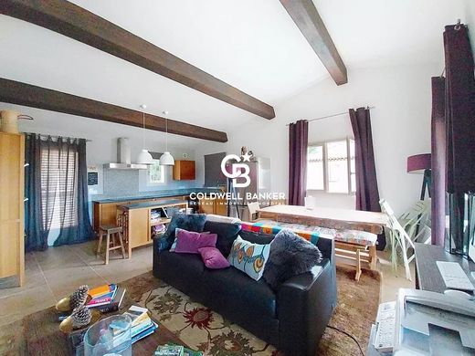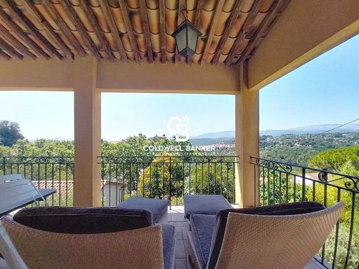 Unique top-floor furnished penthouse in a dead-end street: a small garden with fountain, an entrance hall and toilet, a living room with a fireplace opened by two French doors to a panoramic terrace offering breathtaking views of the authentic villages of Montauroux and Callian, a fully equipped open kitchen, a master bedroom and its private bathroom, a second bedroom with its own shower room. A sensation of large space thanks to the high cathedral ceilings. The lovely panoramic pool is built in the center of the 2 villas; 8 steps downhill in order not to disturb.
