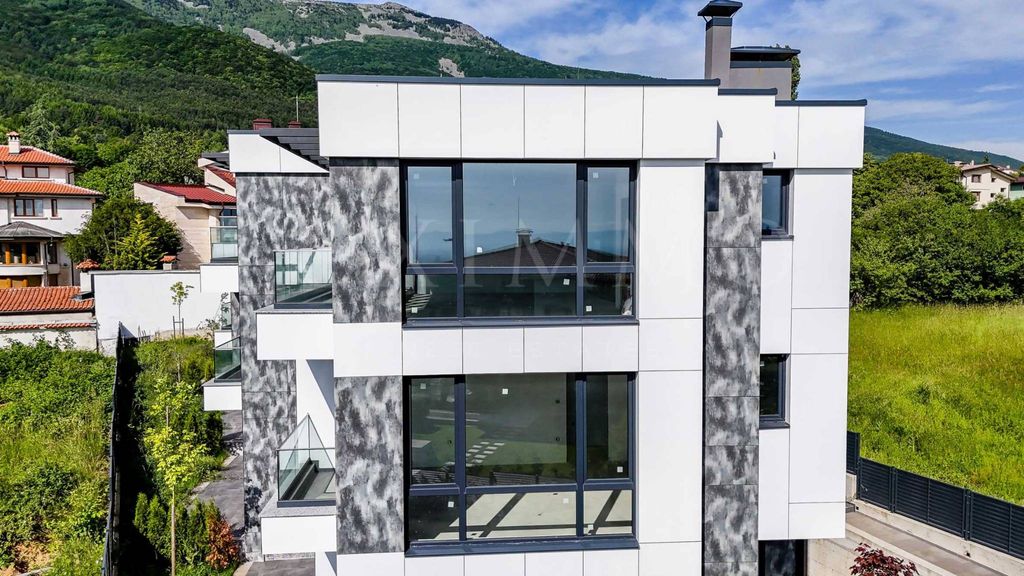 We present a new three-story house with a modern architectural vision and wonderful views of Vitosha. The house is part of a new complex of four terraced houses with controlled access and an excellent location in the prestigious and preferred neighborhood of Sofia - "Dragalevtsi".