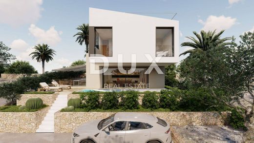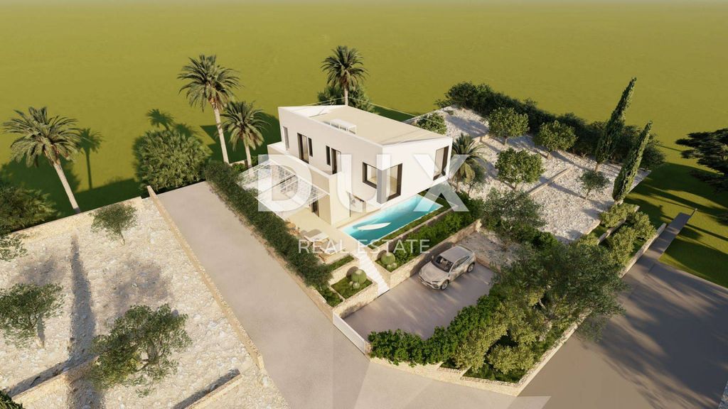 Beautiful villa for sale in a new building near the sea. It is located in the town of Kolan on the island of Pag. The house consists of: open space kitchen, dining room and living room, 3 bedrooms, walk-in wardrobes, 2 bathrooms, toilet, outdoor terrace, spacious garden, roof terrace, swimming pool, 2 parking spaces. One outdoor mono split unit and one outdoor mulƟ split unit - VRV system - air-to-air heat pump were installed for the mentioned house. The building block will be arranged with vehicular and pedestrian access and parking at the front and terraces and yards on the rest of the plot. Part of the plot will be landscaped as a park with native greenery in order to create as much shade as possible on the plot and create the most beautiful ambience. Dear clients, the agency commission is charged in accordance with the General Business Conditions www.dux-nekretnine.hr/opci-uvjeti-poslovanja