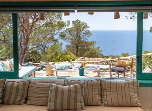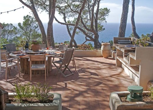Tenuta La Mola - Privileged position and view Description Beautiful estate of approximately 15,000 m2 with inside a splendid Villa with a Mediterranean flavor of approximately 225 m2 and with private infinity pool overlooking the sea. The Villa with sea view on the southern cliff of La Mola, a truly magical and isolated place from which to contemplate the sea and the stars in the light of the headlights. It is located in a very quiet area where you can breathe a more relaxed and less touristy atmosphere . The Villa, completely renovated and set up for daily life throughout the year, is made up of two independent houses furnished with exquisite taste, for a total of 225 m2 built on a large plot of 15,000 m2. Main house (150 m2). On the ground floor we have a large living-dining room with fireplace and kitchen on a different level, which shares the same space from which you can see the sea, as well as a double bedroom and a bathroom. The upper floor consists of a charming entrance hall which serves as an office/chillout and connects to two en-suite double bedrooms with their respective raised terraces overlooking the sea. Studio (75 m²) Semi-detached studio, totally independent from the main house. It has a kitchen - dining room on the ground floor with direct access to the garden and sea view and a large mezzanine on the upper floor consisting of a living room with fireplace, a double bedroom and 1 bathroom. As regards the outside, a very welcoming garden with swimming pool surrounds the entire house with various terraces and rooms at different levels, thus providing a spacious relaxation area with sofas and a large terrace with barbecue where you can eat outdoors. The property has air conditioning in all rooms, internet connection, stereo system via Bluetooth, projector in the main house and relaxation area with table football.