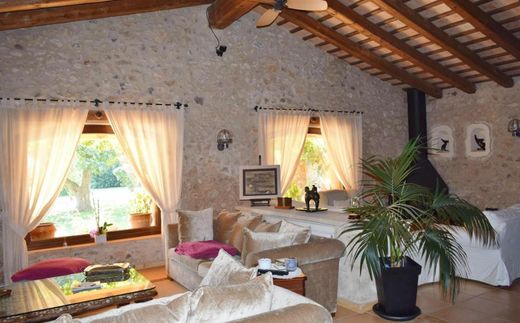 On a spectacular 5-hectare plot of land we find this beautiful restored stone farmhouse. Its origins date back to the 15th century, when it was used as a flour mill. The farm also has two auxiliary buildings currently used as a tack room, storage for horse carriages and 10 boxes for horses. These buildings are more recent. The adjacent land was used as a training track.