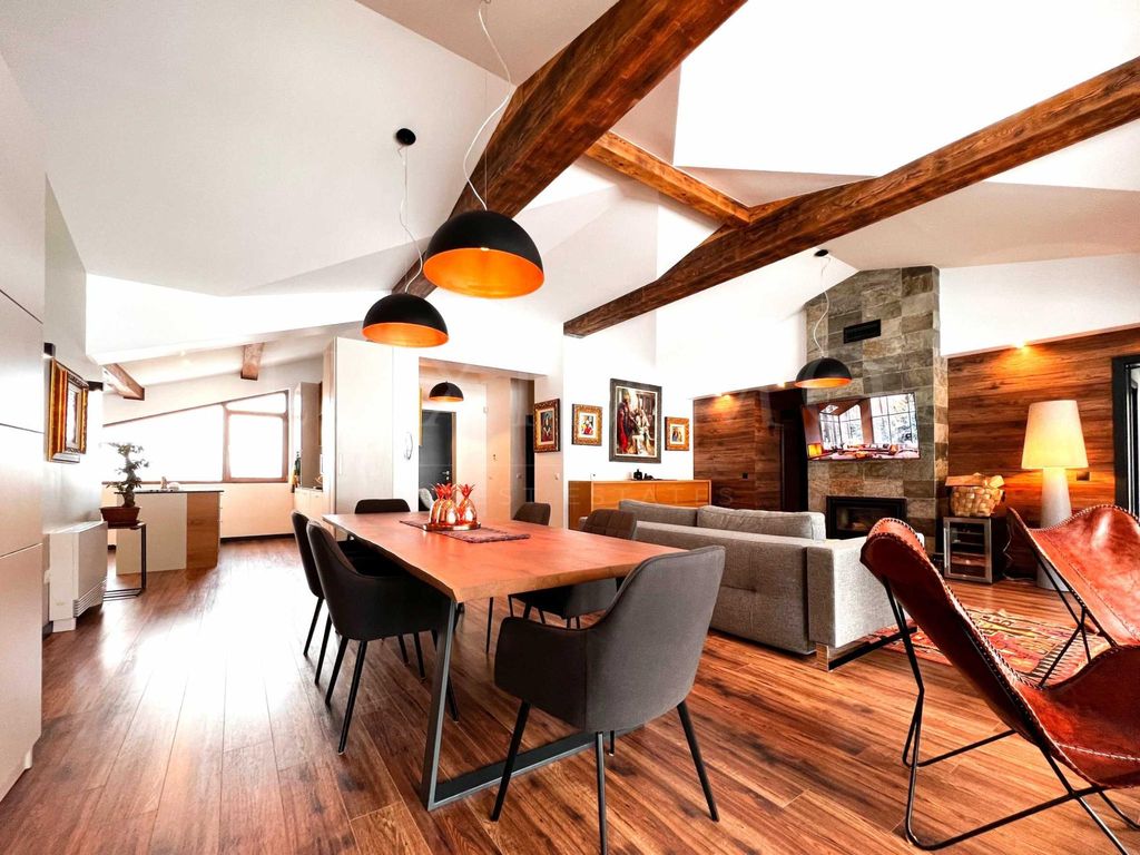 The exterior and interior are completely in line with the typical mountain style - wood and stone.