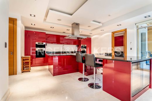 On the ground floor, you will find the living room with a layout that maximizes brightness and views with the extensive use of large glass panels. The luxury kitchen opens on the living room with its custom central fireplace, the outdoor terrace and is fully equipped laundry with miele appliances such as an integrated plancha, a wok, wine cooler.....From the kitchen, you also have access to the laundry room equipped with miele washing machine and dryer, ice machine. Three en-suite bedrooms with dressing rooms, a cinema room, a guest toilet, a technical room and very generous double garage are also available on this floor