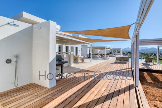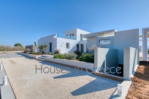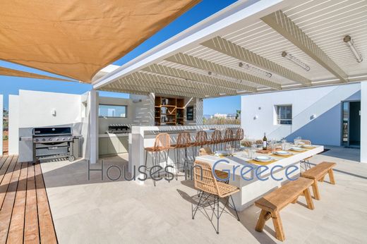 This beautiful, recently-built villa is ideally located just 3 kilometres from picturesque Naoussa. The view from the property is magnificent: the whole of the bay of Laggerie opens up to you, with the added bonus of enjoying the reflection of the sunset every evening. The pretty sandy beaches are less than 300 m from the house, and Santa Maria is less than a kilometre away.