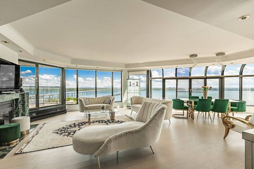 Welcome to Penthouse 10 at 80 Rue Berlioz, a spacious two-level residence in Les Verrières sur le Fleuve, a sought-after address on Nuns' Island. This three-bedroom, two-and-a-half-bathroom home offers sweeping views of the St. Lawrence River and city skyline from two private balconies. The two-floor layout provides comfortable separation of living and private spaces, complemented by two fireplaces that add warmth and ambiance throughout the home. Two dedicated garage spaces complete the residence.